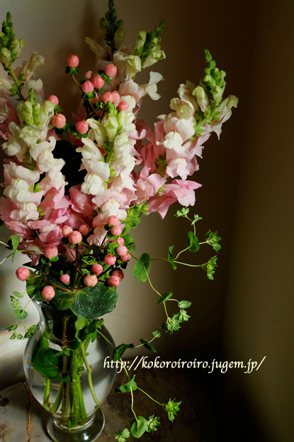 JUGEMテーマ:短歌スナップ(金魚草)・ヒペリカム・ブプレリューム 雪融けの轍(わだち)の水に日のひかり 春待ちかねて窓開ける家 (ここいろココロの短歌)ブプレリュームはあとひと枝にそれにしてもほんと長持ち!ヒペリカムもまだまだ元気! スナップはストックとも似ていますが金魚草の仲間だそうです大きなフリフリのスカートちょっと田舎っぽくて はにかんで 恥じらって 伸び伸びしててとてもかわいい☆ミルクピッチャーを持った娘さんの絵をイメージ