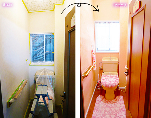 JUGEMテーマ:DIY 2021.1.17.sun 休日ですが、家にこもってDIYをやっています。 昨日は、1F和室の壁を塗って余った漆喰&塗料で、おトイレの壁と柱を塗りました♬ 漆喰は、乾く前の色と乾いた後の色はこんなに違います。 ( ^艸^).゚☆。・本日は飾り付けも完了し、かわいくなりました♡♡♡ ♡窓辺♡ 造花と、かわゆいカフェカーテン3段重ね♪♬♪w ♡水辺♡ 100圴を...