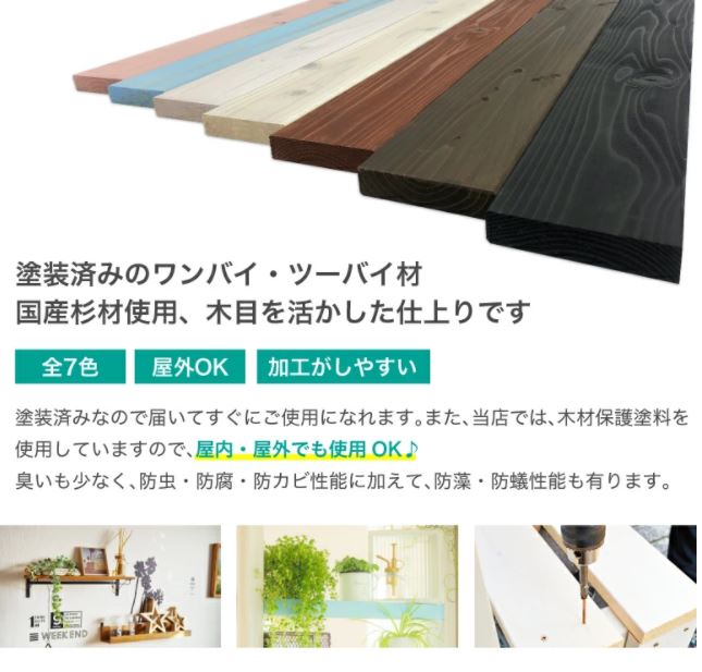 こんにちは。 桜も散って、子供たちの学校も始まり 給食のありがたみを痛感しているブログ担当です。 さて。 今回はこの商品をご紹介します。 DIYと言えばコレでしょ・・ というくらい知名度が上がってきた 「ディメンションランバー」。 弊社オンラインショップでは 無垢材は勿論、塗装ディメンションも人気です。 安心の水性木材保護塗料を使用。 屋内外でご利用いただけます。 1本につきカット2回まで無料。 カットした木口も...