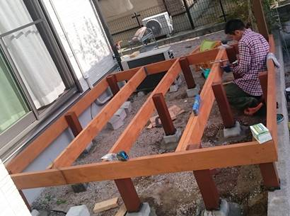 ゴールデンウイークにDIY、いかかですか〜? 我が家の主人は、念願だったウッドデッキ作りに励んでおります。 しかし、なにせ素人・・ 本屋さんやネットで地道に調べておりました。 ==料理本でも、とりあえずは読むのだけれども、作るときは結局適当になってしまう主人。 大丈夫なのか心配でたまりません(笑)== なんだかんだ悩んだ挙句、弊社で取り扱っている杉材をベースに、 足りない材料や道具は、ホームセンターで調達しました。 平日は仕事が忙しいの...