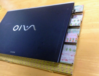 前回の記事『「100均すのこ」でもオシャレ!ノートPCの熱対策をしてみた♪』http://xn--r9j1d0b6i8jx814a8sl.com/?eid=115 で作ったこちらのPC台ですが、数日使っていたら不具合が生じました。( ´△`;) PC台の裏側なんですが、マスキングテープがはがれてきていますww 一度すのこをペイントしているからでしょうか? 粘着力が弱いみたいです。 ...