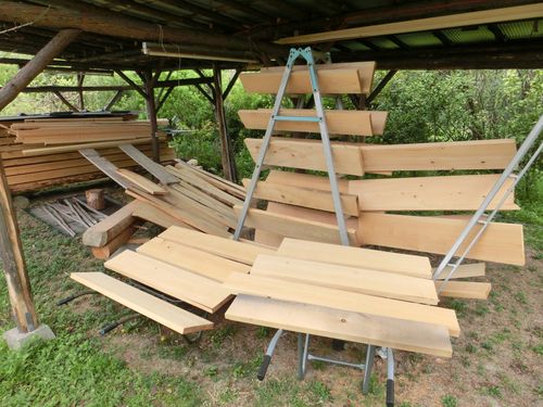 JUGEMテーマ:日々のくらし JUGEMテーマ:DIY 前回から続いております、ichieカフェシリーズのその4になります。 今回は、お店の中に置かれるテーブルの製作になります。 そもそも、テーブルの製作は事前に頼まれていたものだったので、さっそく取り掛かりましょう。 製材所から買ってきた3センチ以上の厚みのある地元産のヒノキを天板に使います。 目下、ただいま乾燥中。 先ほども言ったとおり、打ち合わせの段階のころから既にテーブルの製作は決まっていたので、早い段階からこのヒノキ...