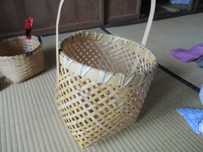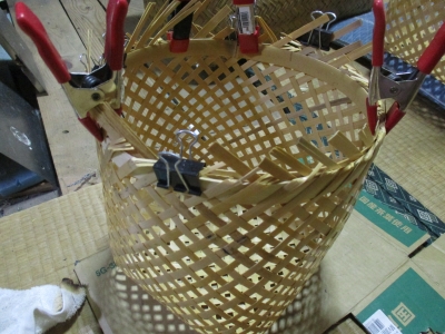 JUGEMテーマ:DIY 苦労していた四ツ目かごの縁の仕上げ。なんとかここまで。 取っ手もつけて、後は底の力竹を入れて完成。