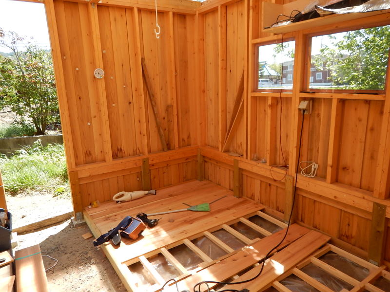 JUGEMテーマ:DIY 床張り作業に取りかかり、約7時間で完成。 杉荒材板 180×1820 t12 18枚 長さ調整して使用 広さ的には約3畳プラスくらいです。 敷き詰めてから、オービタルサンダーで仕上げました。(ペーパー #A60使用) 荒材なので、プレーニングが荒いので少しなめらかなして、掃除しやすくしました。