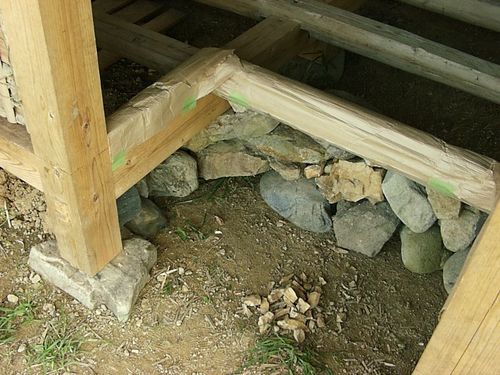 JUGEMテーマ:日々のくらし JUGEMテーマ:DIY ちょっと狭苦しいが、ここがこの棟の入り口。 決して玄関とは言い難い。 土を塗ったときに、土がが向こうへ倒れないように、ぐるっと石で囲い込む。 この上に土を塗る作戦、小舞の代わり。 土がある程度乾いたら、入り口の入り口に(?)長方形の石が陣取って、仕上がりの基準とする。 この長方形の石はその昔、人の手で刻まれてこの形になったんだなあってすごいね、ほんと。 どこかの基礎石として使われてたんだろうか、削るの時間がかかっただろうな・・・ で、隙間の空き...