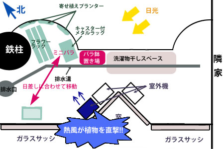 9月になったとたんに涼しくなってビックリ。 ずいぶん過ごしやすくなりましたね。 去年なんて10月でもまだ暑かったのに…(^◇^;) 今年の奈良県は7月は暑かったけれど、8月はかなりマシだったような気がします。 ところで前回書いた、お盆にペイントした室外機カバーの続きです。 ☆ベランダガーデニング その後しばらく自己満足に浸ってたんですが、そのうちに隣の室外機が無性に気になってきました… カバーを設置したのは一番手前の室外機。(青く塗りつぶしてある所) ...