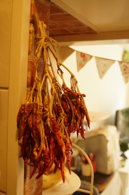 JUGEMテーマ:DIY キッチンのDIYが一通り終わり 毎日白い扉やストライプのレンジフードカバーを眺めて 一人ニヤニヤ やっぱり 自分の思ったとおりに作れるDIYってサイコー 今日はキッチン周辺の小物たち・・・ とうがらしをドライにしました たまに中華料理に使ってます 冷蔵庫横にカレンダー 公園で拾ってきた木に 松ぼっくりや木の実や木の枝のガーランドを巻きつけて そこに小さなはさみをつけて カレンダーをつるしてます キッチンのカウンターにはフラッグオーナメ...