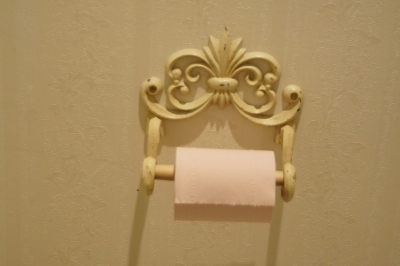JUGEMテーマ:DIY 収納扉ができたところで小物をかわいく ということで アンティークなトイレットペーパーホルダー 同じくアンティークなタオルハンガー こちらは特に手を加えることはなく・・・ そのままでかわいかった〜〜 壁にビスで打ち付けるとこんな感じ 好みだわ〜と自己満足 タオルはレースの繊細さが気に入っている 近沢レースのもの スリッパはトイレの雰囲気に合わせて 乙女な感じの大きなお花のスリッパにしました だんなさんの足が入らないという 致...