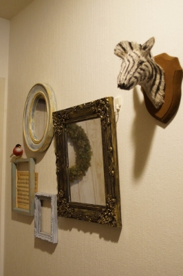 JUGEMテーマ:DIY ちょっとした玄関のDIY 玄関をDIYでアンティークな雑貨屋さん風にしました 右から?高円寺のお気に入りの雑貨屋さんmaltoで買ったシマウマの剥製風 malto http://www.salhouse.com/ ?ミカヅキモモコで300円で買った真っ白なフレームの伝言板?みたいなものを中身をはずし、フレームだけにして黒の絵の具を塗って1晩乾かす・・・そしてゴールドの絵の具をアンティーク風に塗装 そしてダイソーで買った同じ大きさの鏡をはめ込んで・・・ なんちゃってアンティークミラー でも後日同じお店に行...