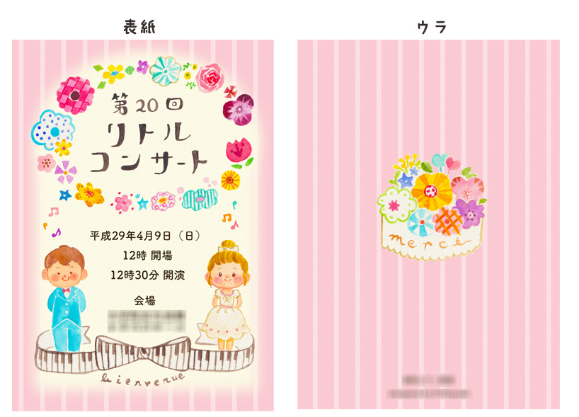 お仕事をさせていただいたおはなしです。 以前からやってみたかった、子供と音楽関係のお仕事。 長女がお世話になっているピアノ教室の発表会のプログラム制作です。 『レッスンブックの絵がないページはやる気が出ない』と長女がいうので挿絵を描いていたところ、先生から「絵が可愛いので、プログラムを任せたい」とお声がかかったのでした。 初めてのプログラム制作で悩みましたが、吹奏楽時代に音楽関連のプログラムを何度も目にしていたので案外とすんなり出来...