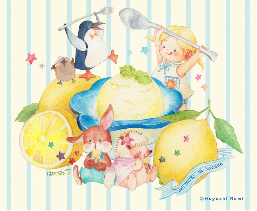 7月に入って、はや5日。 もう下半期なんだな〜と、ぼんやり考えています。 夏なので、レモンのイラストを描いてさっぱりしよう。 レモンシャーベット、第一子を妊娠時にいっぱい食べました。 つわりで、これしか食べられなかったなあ…と思い出しています。 レモンといえば、初恋の香りという非常にレトロなイメージ♪ ハリネズミちゃんのドキドキが聞こえてしまって、ドキドキなうさぎくん。 やる気満々...