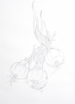 JUGEMテーマ:水彩画。鉛筆画。 JUGEMテーマ:絵・イラスト・挿絵続いて葉などを彩色していきます。根やハイライト部分に前もってマスキングしていたところを剥がし薄く彩色をほどこします。これで完成!!です。『 にんにく 』ラングトン水彩紙 F4サイズ にほんブログ村