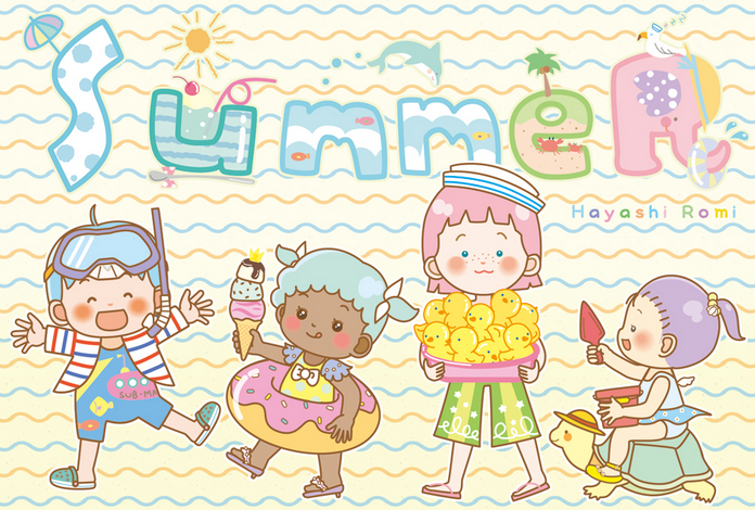 とても心配していた地震。 いまも、あっちこっちで余震が続いていて不安です……雨もね。 不安は拭いきれるものではありませんが、それでもありがたいことにのほほんと日常を過ごしています。 今年も暑中見舞いのハガキを作りました。 初デジタル! 水遊びの子供達をテーマに「おもいおもいに夏を楽しんでほしい」という気持ちを込めて書きました。 潜って遊ぶのも、浮き輪で浮かぶのも、お気に入りのおも...
