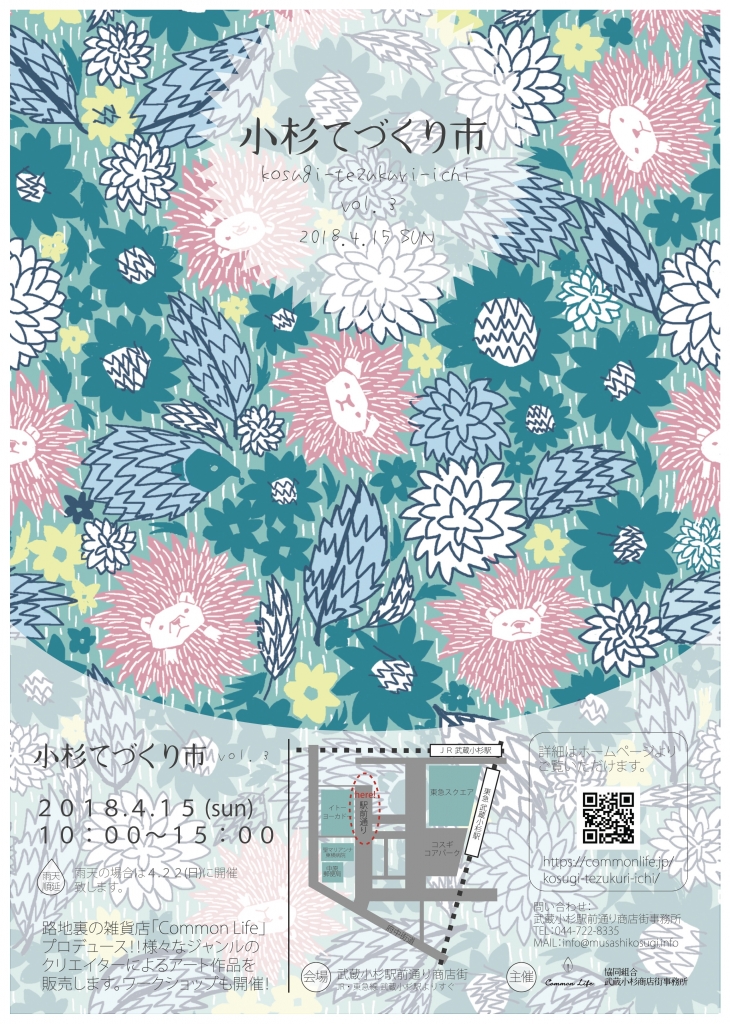 こんばんは。 アブラムシをプチプチつぶすのが日課の店長です。 しかしあの増殖スピードは尋常じゃないね!! 続々とハンドメイドイベント決定しておりますのでお知らせ♥ 「第3回 小杉てづくり市」 会場:武蔵小杉駅前通り商店街(イトーヨーカドーとTSUTAYAの間の通り) 会期:2018年4月15日(日) 10:00〜15:00 雨天順延(4月22日) 布や粘土、ビーズなどを使って動物モチーフの作品を数多く手がけるほか 音楽好きでFujirockers.orgのTシャツコンテストでグランプリを獲得 ...