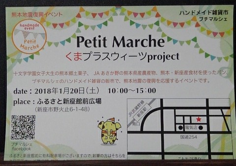JUGEMテーマ:ハンドメイドイベント 雪、積もりましたねー。 四年前の雪の後に買ったまま しまい込んでいたスコップが ようやく日の目を見ました。 ここで一句 雪かきで ちょっとはしゃいで 筋肉痛 たぶん明日ね…腰とか腕とかに来そうです。 それはさておき 土曜日のくまプラスウィーツproject、 くまモンやゾウキリン、プラスちゃんなど ゆるキャラも登場して 盛り上がっていました。 プチマルブースにお越しくださった皆さんも ありがとうございました! ...