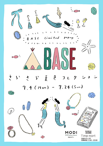 こんにちは。 このショッピングアプリBASEさんセレクトの催事イベントに参加させていただくことになりました。 BASEさんで女性に人気の21ブランドさんの素敵なアクセサリーが 渋谷MODI 5Fの「Time mat」(タイムマート)に集まっていますよ。 ■ BASE Limited popup -さらさら夏色コレクション ■ 場所:渋谷モディ5F「Time mart」(タイムマート) ■ 日程:7/4〜7/24 11:00-23:00(※初日のみ14時よりオープン) http://timemart24.com/290/ 私たちchovonS...