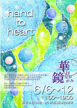 2日続けてラッピング途中で電池が切れてしまい 気づいたら朝6時だったCubicです。 何事もなかったように続きをしましたけど。 今日こそはちゃんと横になって眠りたい。 いよいよ明日です! hand to heart華鏡〜はなかがみ 6月8日(水)12日(日)11時〜19時 地下歩行空間 憩いの空間(通路) イベントは6日から開催していますが Cubic@Styleとしては8日(水)と12日(日)の2日間 参加させていただきます。 菜の花 しらかば 塩 みかん あじさい シコン たまご はちみつ 椿とローズマリー がごめ昆布 ...