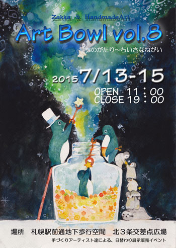 いよいよ月曜日です。 ArtBowl vol.8 星ものがたり〜ちいさなねがい 7月13日(月)11時〜19時 地下歩行空間北3条交差点広場 「星」「夜空」「月」もしくは「紺色」がテーマの作品が並びます。 なんとか間に合った感じでホッ。 しらかば 菜の花 塩 竹炭メンソール よもぎ三盆 ミルクマルセイユ シコン がごめ昆布 たまご 星空 Rose プルーン リクエストの多かったはちみつとひまわりは あと数日の熟成が必要になりました。 もう少しお待ちくださいね。 星型スワロフスキーを使った ピ...