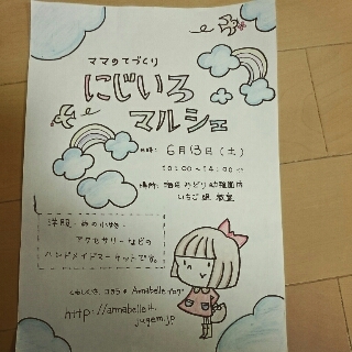 皆様お久しぶりです Anabelleのブログもかなりの放置状態でしたが、久々にハンドメイドイベントを開催する 事になりましたので、お知らせします ☆ ☆ ☆ ☆ ☆ ☆ 小さな『にじいろマルシェ』〜Annabelle〜 日時:6月13日(土)10:00〜14:00 場所:安芸郡海田町南幸町12−4 海田みどり幼稚園 いちご組教室 みどり幼稚園のお祭り『おかえりな祭』への参加となっております 遊びのコーナーや飲食の出店、ステージ、ゲームなど子供が喜ぶ楽しい お祭りです *****...