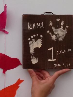 JUGEMテーマ:ハンドメイドイベント すこし前になりますが、mannnaマルシェ 無事終了いたしました 朝からたくさんのお客様がいらしゃって、楽しい2日間を過ごすことができました すごく盛り上がったおりましたが、ちょろちょろし過ぎて、写真撮り忘れました 唯一撮ったのがこちら、 ちびこの1歳の記念にボードを描いてもらいました 手形と足形 とっても記念になります よかった ショックなのは、今回の作品作りで、ミシン壊しちゃいました ただ今修理中です