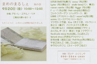 JUGEMテーマ:ハンドメイドイベント9月になったけど毎日暑いですね😅しかも不安定な天気で落ち着かないです9月のイベントはまめのまるしぇですHyggeのはじまりのイベントです🍀今回はいままでより大きな会場ですよ!素敵な方たちが揃いました9月20日(金) 10:00~12:00アモーレ・エテルノ・リオ主催:ふくらしや