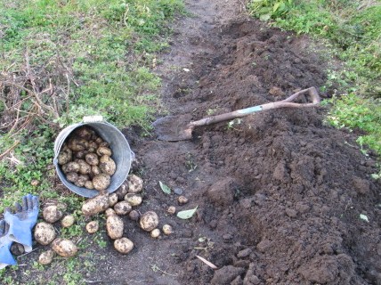 今日は雨降りだというので 昨夕慌てて日没ギリギリまでジャガイモ収穫しました。今作は出島1本休耕地を使ったせいか 掘ってみたらばミミズの大群が・・・挙句にこの季節になるとカエルを叩き起こす破目になり 掘り進めながら謝ってばかりです。ですが 土寄せ・中耕もままならず 結局晩期に1度の土寄せのみなので、イモの緑化も多かった。全体の三分の1を掘った段階での画像です縦に置いてないから判りにくいけど、このバケツ かなり大きなバケツですが イモ数が少ないからかサイズは大きかった。芽欠きもしてないから 小さいイ...