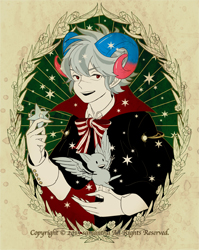 JUGEMテーマ:創作イラスト お久しぶりです!最近更新が月一になっている気がしないでもない。 もっと更新したいんですけどね。 今日の絵はイラストSNSの企画(金星号)が5周年という事で、それを記念して記念切手風の絵を参加者さんみんなで描いてそれを一枚の切手シートにします!という、企画内企画に参加する予定だった絵です。 締め切りを一分過ぎて参加出来なかったという残念な絵です!!! 折角描いたのでアップしようと思います。 アンティーク風の切手をイメージして描きました。 久しぶりに企画のジャックと...