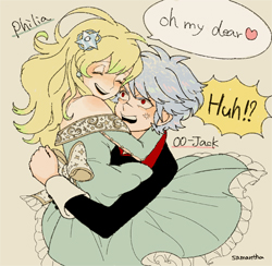 JUGEMテーマ:創作イラスト あぁっ日付が過ぎていた!!! 日付過ぎたので昨日はハグの日でしたね! 絵は間に合ってたよ。ほんとだよ。samantha嘘つかない。 落書きは描いた日にさっさとアップするべきですよね。 分かってはいるよ。 でも寝る前お絵描きして満足してさぁ寝るか…Zzzって感じなんですよ。 言い訳よくない!! 今日もフィリアと00-ジャックです。 ハグと言えばおなじみのこの構図を描きたくなります。 もう何度描いている図なのかって感じですが、飽きないのですよね、この図。 鋼メンタルポジ...