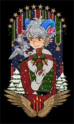JUGEMテーマ:創作イラスト メリークリスマス!! 今年のクリスマス絵はシャルル国に住むスゥ君とクララ村に住むローラちゃん。 小さなサンタさんと小さなプレゼント、みたいな感じの絵。 喪中の人には寒中お見舞いを〜と思ってたんだけど、 折角なのでクリスマスカードという形でのお返事にしようかなと思って送らせてもらいました。 が、忙しくてぎりぎりに出したのでちゃんとクリスマスに届いたか結構不安です!! 過ぎてから届いたらごめんなさい; イラストには全員の登場人物が入らなかったので、お話にはレクム...