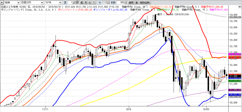 JUGEMテーマ:株・投資 JUGEMテーマ:日経225先物 JUGEMテーマ:トレード手法 日経225先物 ブログ トレード戦略20180319チャート 備忘録でチャートをはっておきます なかなか難しい相場ですね 売りで入れた人はだいぶ取れましたね 日足チャート 60分足チャート 30分足チャート 15分足チャート 5分足チャート
