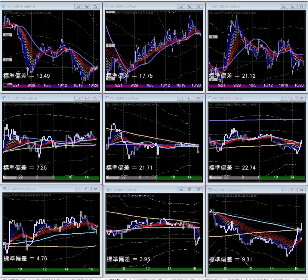 JUGEMテーマ:FX短期トレード(デイトレ・スイング) 時間帯は、16時00分や16時30分など、30分刻み 動くKU-POWERを見つける方法は、基点設定をその5分前〜3分前にする 保有時間は、15分程度 スキャルピングなので、目標値幅は10pips程度 ※KU-POWER 1分足にGMMA 雲出現のアラートを表示させた
