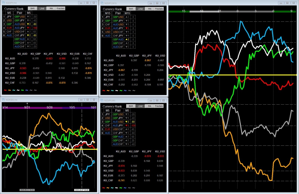 JUGEMテーマ:FX短期トレード(デイトレ・スイング) 今度は、KU-BASEがKU-GBPの場合です KU-GBPにおいて、19時00分、GMMA+RCIでシグナル点灯 この時の相手は、KU-AUDまたはKU-JPYです 「移動平均線ルール」※1によると、KU-JPY よって、GBPAUD、ロング よって、GBPJPY、ロング エグジットは、 相関が崩れたとき シグナル点灯したとき ...