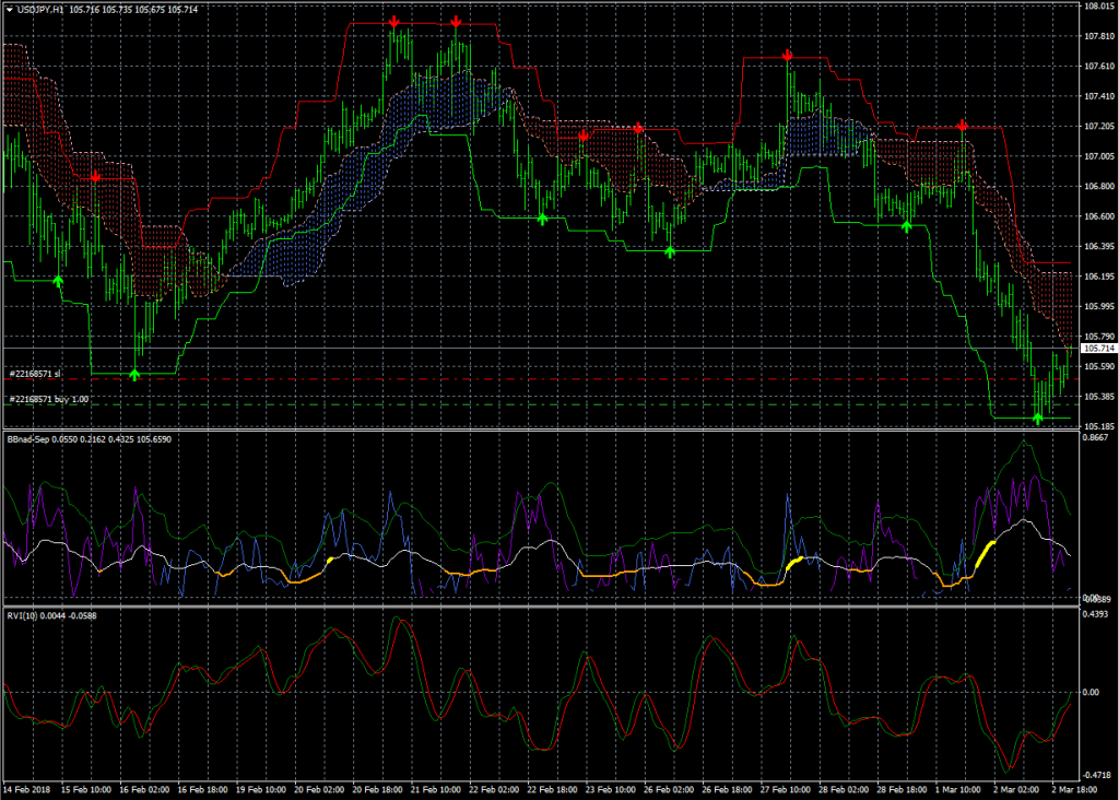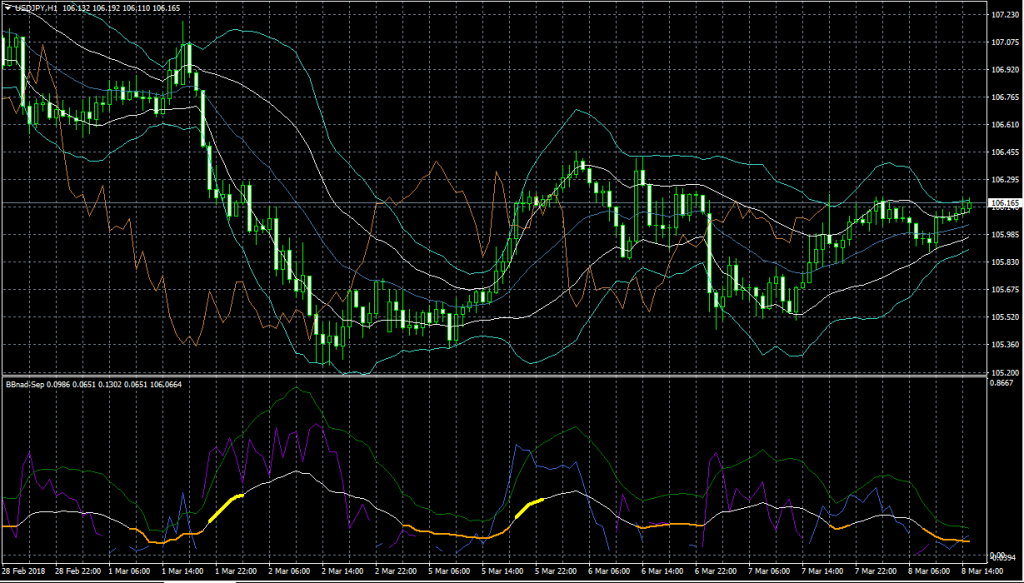 JUGEMテーマ:FXツール情報 MT4のインジケータを作ってみる。といっても、こんなことも(簡単に)出来るって内容です。 プログラミングの内容を書いてもつまらないと思うので、画像だけ。 ボリンジャーバンドって日足とかチャートの上に乗っけられて表示されてますよね。 スパンモデルとか表示すると、線がぐちゃぐちゃして見にくくなります。 オシレータ系みたいに別ウィンドウで表示してもいいじゃない。 作ってみました! 真ん中のウィンドウに自...