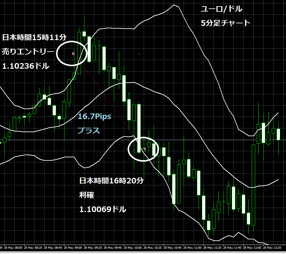 JUGEMテーマ:FX 情報分析 5月28日のOANDA JAPANのデモトレードで自作EA「ロンドンは午前7時」は、日本時間15時11分にユーロ/ドルのショートポジション(ユーロ売りドル買い)を1.10236ドルでエントリーし日本時間16時20分に1.10069ドルでポジションをクローズして16.7Pipsのプラスで8,985円の利益となった。(Lot数は0.5。5万通貨) 2019年2月26日からのフォワードテスト159勝82敗(159勝/240トレード、勝率66.23%、引き分け含まず)で422.6pipsのプラスで26万5,941円の利益となった。 OANDA JAPANのデモ口座のスプ...