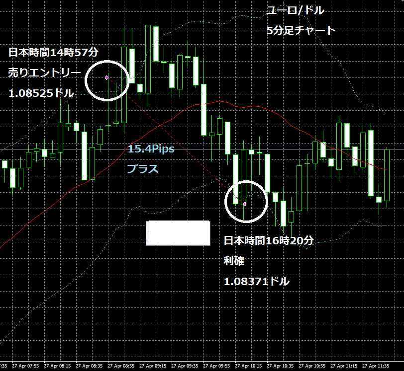 JUGEMテーマ:FX 情報分析 4月27日のFXTF(ゴールデンウエイ・ジャパン)の1000通貨コースでのデモトレードで自作EA「ロンドンは午前7時」は、日本時間14時57分にユーロ/ドルのショートポジション(ユーロ売りドル買い)を1.08525ドルでエントリーし日本時間16時20分に1.08371ドルでポジションをクローズして15.4Pipsのプラスで8,252円の利益となった。(Lot数は0.5。5万通貨) 2019年2月26日からのフォワードテスト148勝74敗(148勝/221トレード、勝率67.00%、引き分け含まず)で399.1pipsのプラスで25万3,557円の利益...