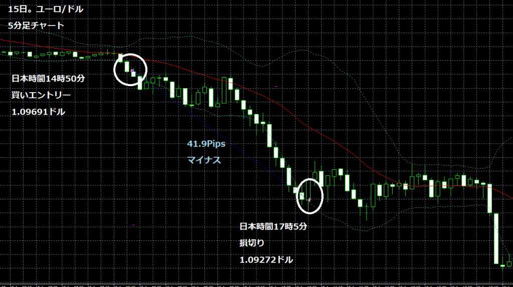 JUGEMテーマ:FX 情報分析 4月15日のFXTF(ゴールデンウエイ・ジャパン)の1000通貨コースでのデモトレードで自作EA「ロンドンは午前7時」は、日本時間14時50分にユーロ/ドルのロングポジション(ユーロ買いドル売り)を1.09691ドルでエントリーし日本時間17時05分に1.09272ドルでポジションをクローズして41.9Pipsのマイナスで22,499円の損失となった。(Lot数は0.5。5万通貨) 2019年2月26日からのフォワードテスト145勝71敗(145勝/215トレード、勝率67.44%、引き分け含まず)で402.7pipsのプラスで25万5,524円の利...