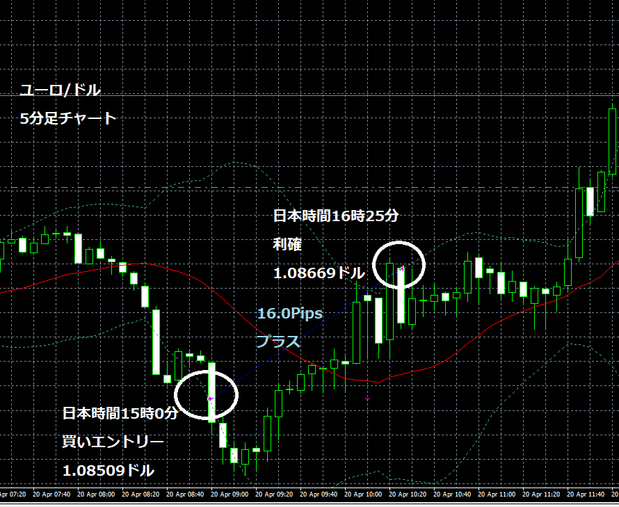 JUGEMテーマ:FX 情報分析 4月20日のFXTF(ゴールデンウエイ・ジャパン)の1000通貨コースでのデモトレードで自作EA「ロンドンは午前7時」は、日本時間15時00分にユーロ/ドルのロングポジション(ユーロ買いドル売り)を1.08509ドルでエントリーし日本時間16時25分に1.08669ドルでポジションをクローズして16.0Pipsのプラスで8,621円の利益となった。(Lot数は0.5。5万通貨) 2019年2月26日からのフォワードテスト147勝72敗(147勝/218トレード、勝率67.43%、引き分け含まず)で414.9pipsのプラスで26万2,109円の利益と...
