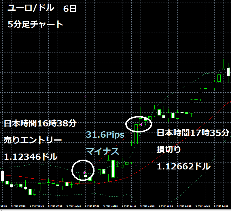 JUGEMテーマ:FX 情報分析 3月6日のFXTF(ゴールデンウエイ・ジャパン)の1000通貨コースでのデモトレードは、夏時間に変更されたのでこの期間は、ForexExchangeのデモ口座で測定している。自作EA「ロンドンは午前7時」は、日本時間16時38分にユーロ/ドルのショートポジション(ユーロ売りドル買い)を1.12346ドルでエントリーし日本時間17時35分に1.12662ドルでポジションをクローズして31.6Pipsのマイナスで16,714円の損失となった。(Lot数は0.5。5万通貨) 2019年2月26日からのフォワードテスト130勝65敗(130勝/194...