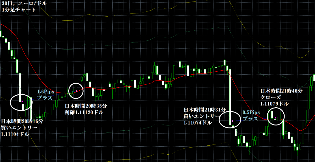 JUGEMテーマ:FX 情報分析 10月29日のFXTF(ゴールデンウエイ・ジャパン)の1000通貨コースでのデモトレードで自作EA「ロンドンは午前7時」は、日本時間15時15分にユーロ/ドルのロングポジション(ユーロ買いドル売り)を1.10917ドルでエントリーし日本時間20時00分に1.10902ドルでポジションをクローズして1.5Pipsのマイナスで817円の損失となった。(Lot数は0.5。5万通貨) 10月30日のFXTF(ゴールデンウエイ・ジャパン)の1000通貨コースでのデモトレードで自作EA「ロンドンは午前7...