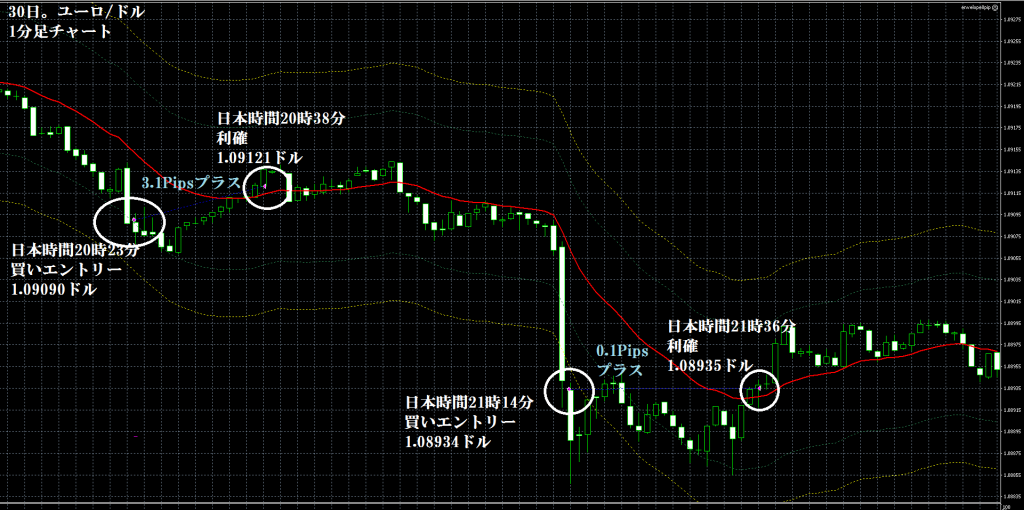JUGEMテーマ:FX 情報分析 10月1日のFXTF(ゴールデンウエイ・ジャパン)の1000通貨コースでのデモトレードで自作EA「ロンドンは午前7時」は、日本時間14時53分にユーロ/ドルのロングポジション(ユーロ買いドル売り)を1.08880ドルでエントリーし日本時間16時17分に1.08877ドルでポジションをクローズして0.3Pipsのマイナスで162円の損失となった。(Lot数は0.5。5万通貨) 2月26日からのフォワードテスト67勝32敗(67勝/99トレード、勝率67.68%、引き分け含まず)で198.2pipsのプラスで14万4,384円の利益となった。 ...