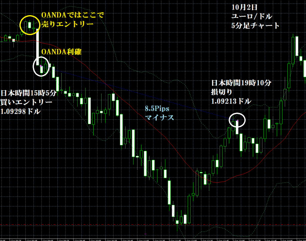 JUGEMテーマ:FX 情報分析 10月2日のFXTF(ゴールデンウエイ・ジャパン)の1000通貨コースでのデモトレードで自作EA「ロンドンは午前7時」は、日本時間15時5分にユーロ/ドルのロングポジション(ユーロ買いドル売り)を1.09298ドルでエントリーし日本時間19時10分に1.09213ドルでポジションをクローズして8.5Pipsのマイナスで4,574円の損失となった。(Lot数は0.5。5万通貨) 2月26日からのフォワードテスト67勝33敗(67勝/100トレード、勝率67.00%、引き分け含まず)で189.7pipsのプラスで13万9,810円の利益となった。...