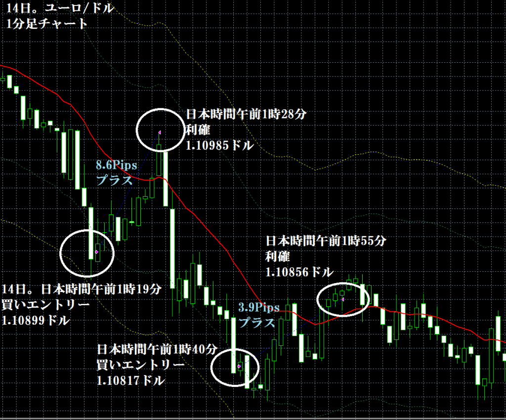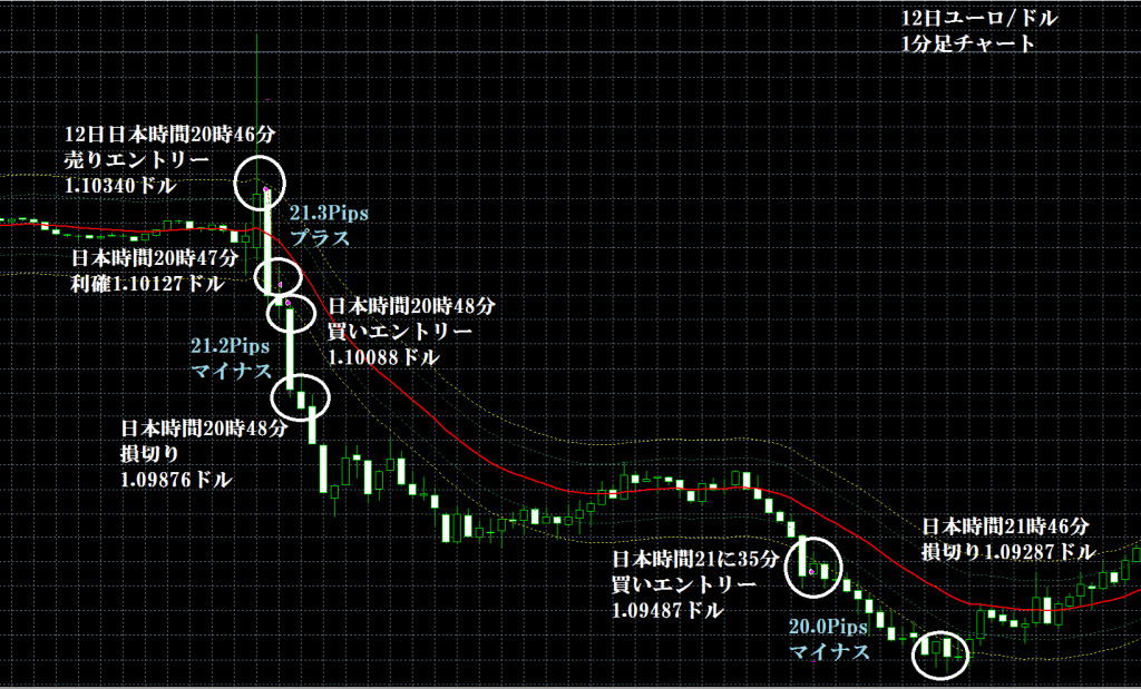 JUGEMテーマ:FX 情報分析 9月12日のFXTF(ゴールデンウエイ・ジャパン)の1000通貨コースでのデモトレードで自作EA「ロンドンは午前7時」は、日本時間15時03分にユーロ/ドルのロングポジション(ユーロ買いドル売り)を1.10110ドルでエントリーし日本時間16時20分に1.10182ドルでポジションをクローズして7.2Pipsのプラスで3,886円の利益となった。(Lot数は0.5。5万通貨) 2月26日からのフォワードテスト61勝28敗(61勝/89トレード、勝率68.54%、引き分け含まず)で195.4pipsのプラスで14万2,912円の利益となった。 ...