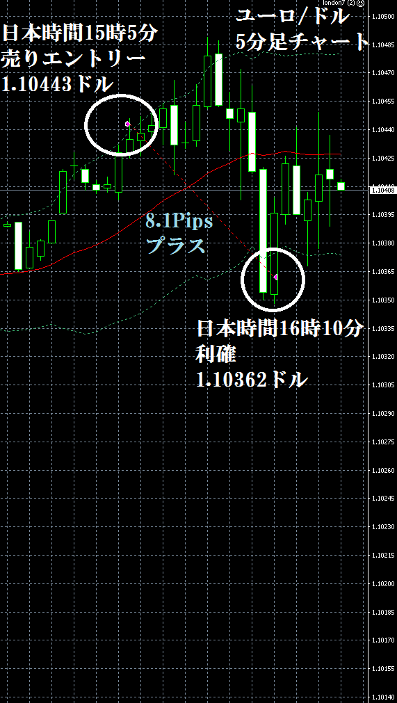 JUGEMテーマ:FX 情報分析 9月19日のFXTF(ゴールデンウエイ・ジャパン)の1000通貨コースでのデモトレードで自作EA「ロンドンは午前7時」は、日本時間15時05分にユーロ/ドルのショートポジション(ユーロ売りドル買い)を1.10443ドルでエントリーし日本時間16時10分に1.10362ドルでポジションをクローズして8.1Pipsのプラスで4,374円の利益となった。(Lot数は0.5。5万通貨) 2月26日からのフォワードテスト63勝30敗(63勝/93トレード、勝率67.74%、引き分け含まず)で171.4pipsのプラスで12万9,942円の利益となった...