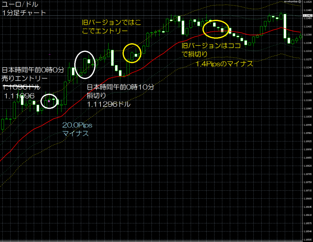 JUGEMテーマ:FX 情報分析 現在、GogoJungle(ゴゴジャン)にて販売中のエンベロープを使用したユーロ/ドルの1分足スキャルピングの自作EA(自動売買ソフト)「えんべろ」。 先日購入した書籍「トレーディングシステムの開発と検証と最適化」(パンローリング社)に従ってパラメータを変更しながら最適化して8月19日からフォワードテスト中。 旧バージョンからでは4月3日からFXTF(FXトレードフィナンシャル)の1000通貨コースのデモ口座でフォワードテスト中。 自作EA「えんべろ」は8月22日の日本時間の18時2...