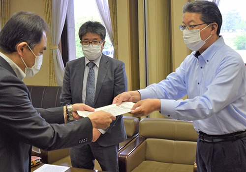 徳永市長に要請する(右から)芥川洋一市委員会委員、河野市委員長、松田市議(1日、今治市役所) 日本共産党今治市委員会(河野五郎市委員長)と松田澄子市議は1日、「新型コロナウイルス対策の強化を求める要請書」を徳永繁樹市長に提出して懇談しました。同市で市長が直接、共産党の要請書を受け取るのは近年なかったことです。 河野市委員長と松田市議は「全国的に変異株が猛威を振るい、今治市を含む愛媛でもかつてない感染拡大が続いている。昨年より今治市でも国・県の交付金などを主な財源にした施策が実施...