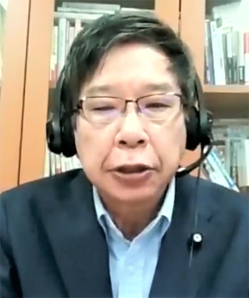 日本共産党県委員会は22日、大門実紀史参院議員を迎え、「日本共産党を語り合うオンラインつどい」を開催し、約140カ所(前日までの集計)で視聴。大門氏は「一日も早く菅政権を倒し、市民と野党が力を合わせて野党連合政権をつくろう」と力を込め、「総選挙は、もう本番状態であり、比例四国ブロックでは白川よう子さんを、愛媛1区では片岡朗さんを必ず押し上げてもらいたい」と訴えました。 「一日も早く菅政権を倒そう」と訴える大門参院議員(22日) 白川よう子さん 2月...