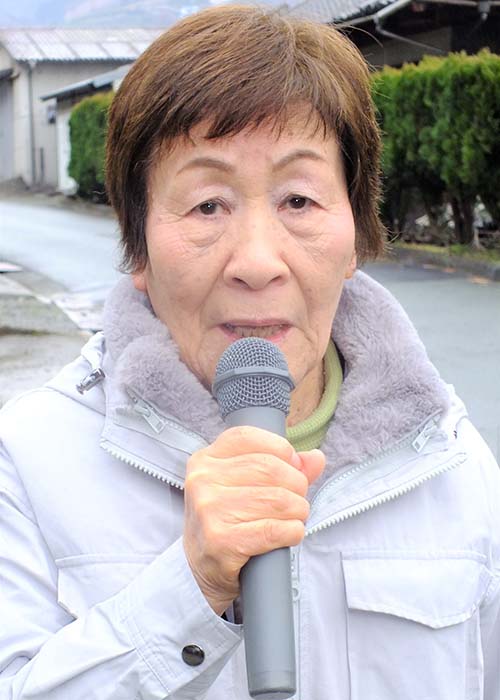励ますつどいで、決意を述べる大野よし子さん(11日、久万高原町) 日本共産党久万高原町支部の大野よし子農業・くらし相談室長を励ますつどいが11日、同町の大野さん宅で開かれ、17人が参加。「地域のために尽くしている大野さんを今度こそ町議会へ」と激励と決意が相次ぎました。町議選(定数13)は、4月13日告示。 地元の元町議(無所属)は「前回、選挙の1カ月半前に突然、『立候補したい』と言うのでびっくりしたが、3人落ちる選挙で、13票差で次点。あれだけしんどい選挙でよくがんばったなと...