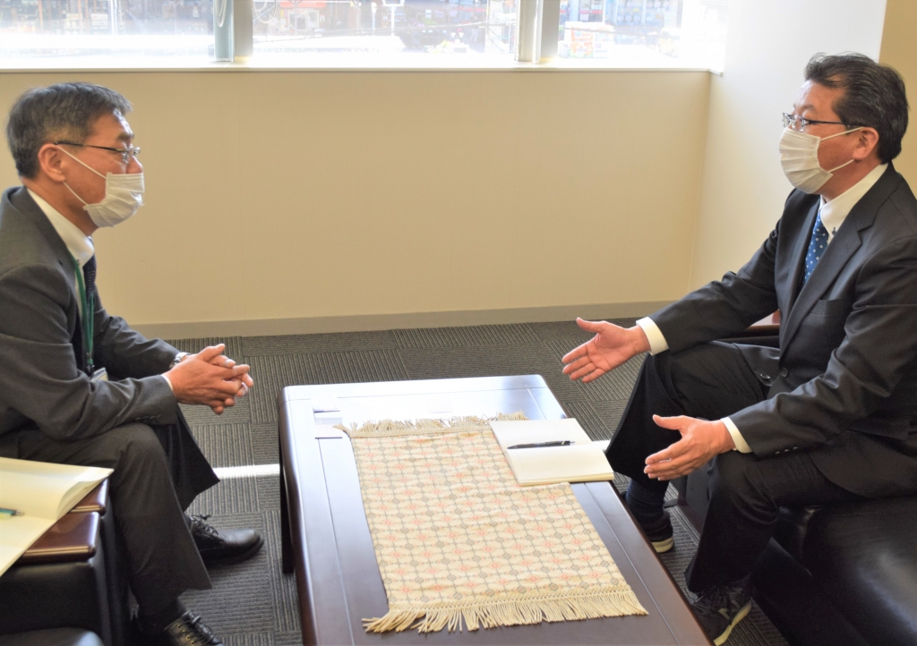 ハローワーク松山の山本所長(左)と意見を交わす田中県議(16日、松山市) 日本共産党の田中克彦県議は16日、松山市のハローワーク松山を訪れ、コロナ禍の下での松山管内の雇用状況などについて、山本博和所長から話を聞きました。 田中県議は、持続化給付金の申請も期限を迎え、年度末に向けて解雇や雇い止め、閉店などによる失業の増加を心配し、「深刻な事態が生じないようにする施策を県や国に求めていきたい」と述べました。 山本所長は、松山管内の月別有効求...