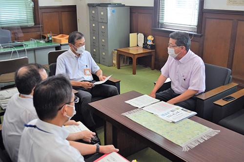 JUGEMテーマ:共産党(日本共産党) 坂上副市長(中央)に申し入れ書を手渡す(左から)ひだか、三好、青木、島の4氏(8月31日、四国中央市役所) 日本共産党四国中央市議団の青木永六、三好ひとし、ひだかゆうすけの3市議と島勝之党市くらしの相談室長(市議予定候補)は8月31日、市役所を訪れ、新型コロナウイルス感染拡大に備えた対策などを篠原実市長に申し入れました。坂上秀樹副市長が応対しました。 申し入れでは、▽市内の感染拡大に備え、地域や事業所の面的網羅的なPCR検査を...