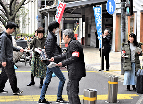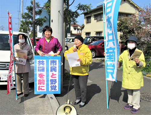 JUGEMテーマ:共産党(日本共産党) 元気に訴える日本共産党桑原支部(18日、松山市) 日本共産党桑原支部は18日、松山市内10カ所で、ハンドマイク宣伝に取り組みました。事務所に集合し、演説原稿をみんなで読み合わせしてから出発。桑原中央通りで4人そろって訴え、その後は車2台に分乗して2組に分かれて街宣。日本共産党ののぼりや赤旗日曜版、「市民と野党共闘を前に」「消費税5%に戻し景気回復を」などのプラスターを掲げ、元気にアピールしました。 支部委員の門田啓子さんらは交替...